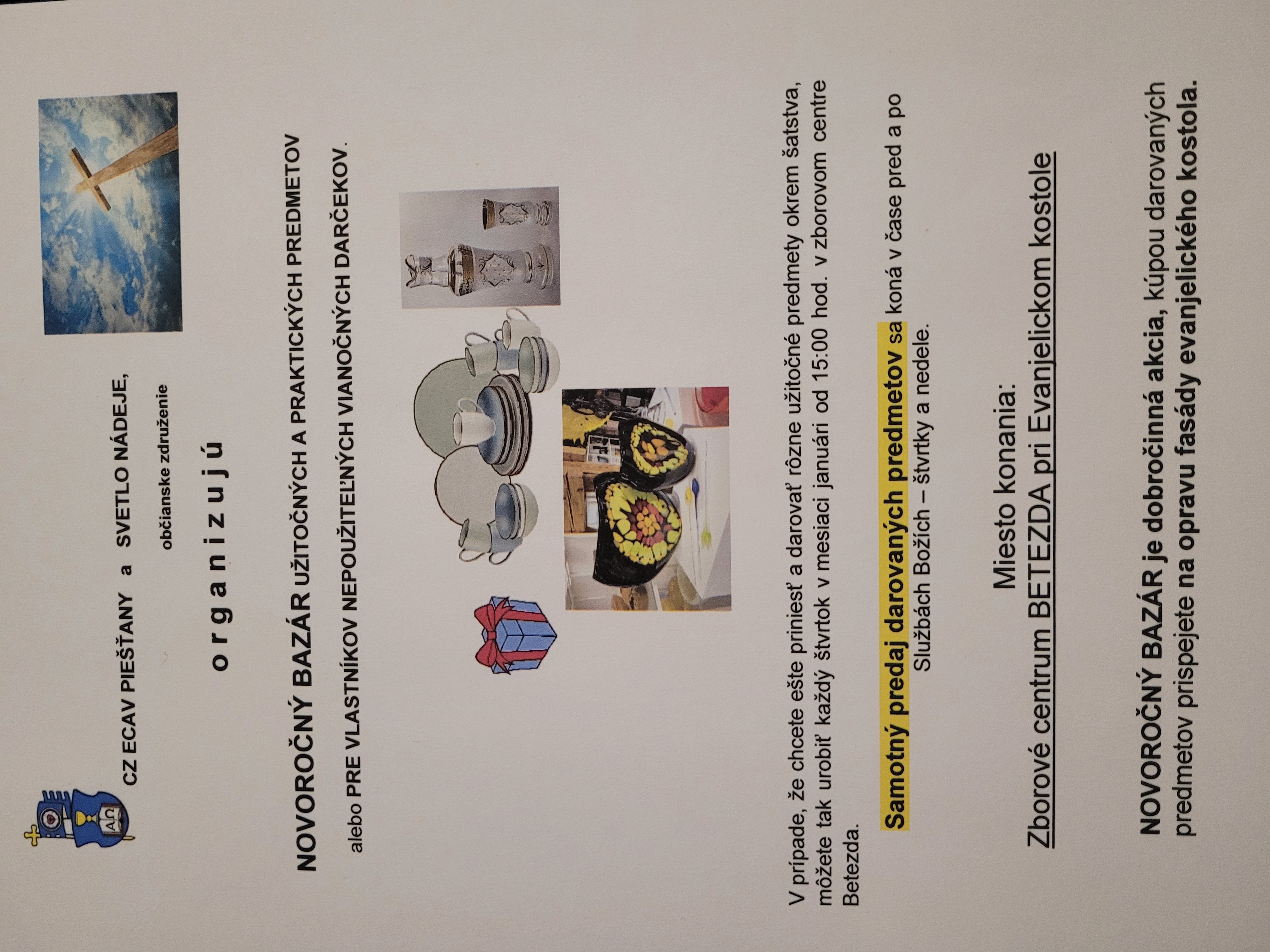 Miesto konania: Zborové centrum BETEZDA pred a po Službách Božích